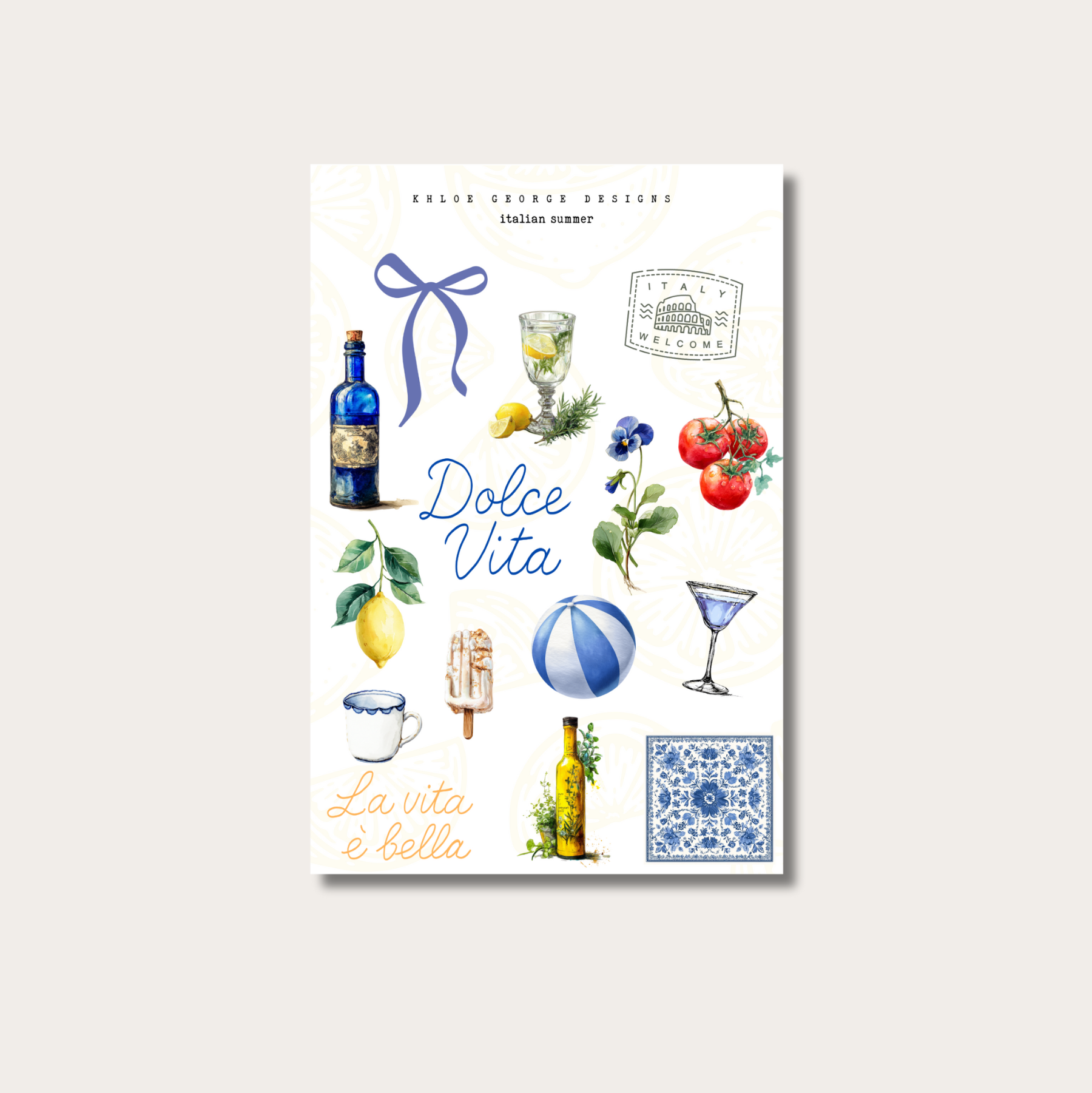Say ciao to summer with this Italian Summer sticker sheet—an ode to sun-drenched afternoons along the Amalfi Coast. Think citrus groves, Vespa rides, and handwritten postcards kissed with sea breeze. With golden yellows, soft blues, and all the vintage Italian charm, it’s your passport to la dolce vita—one sticker at a time.