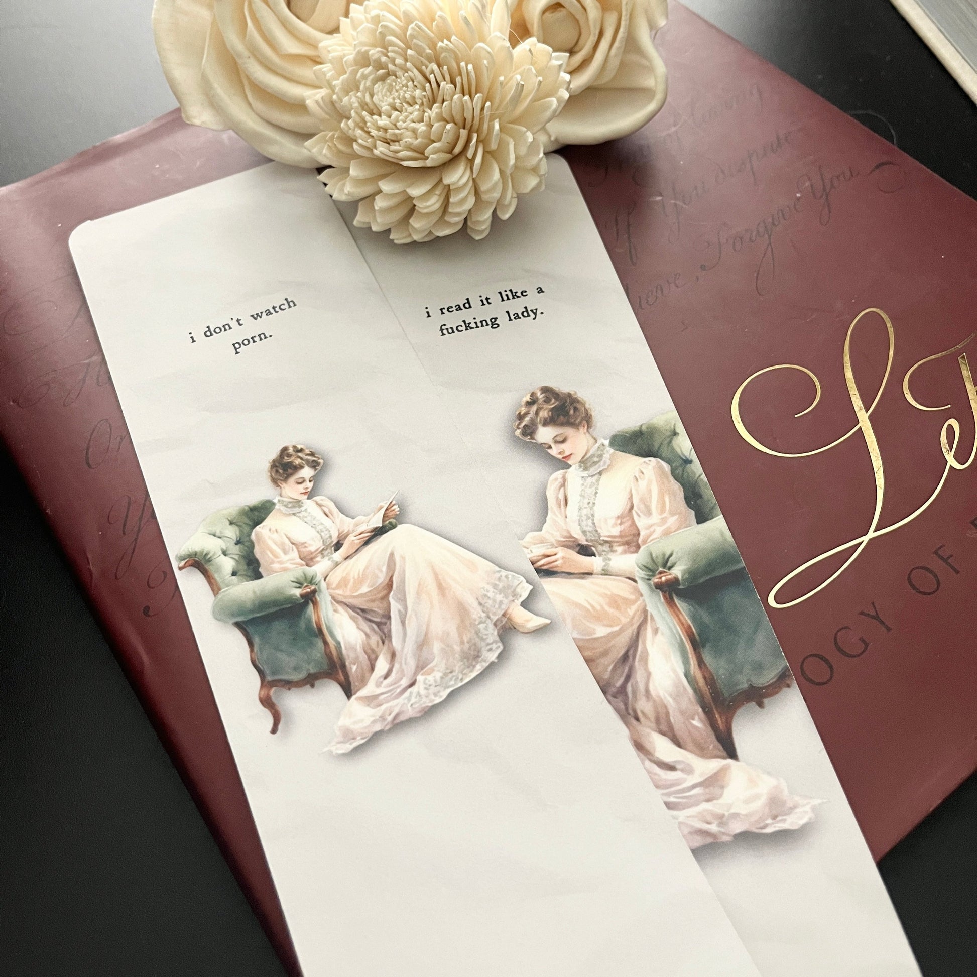 Extra Large Bookmark, Our "I Don't Watch Porn" bookmark is a cheeky and playful companion designed for those who prefer their romance and spice served through the written word. It's the perfect marker for your steamiest stories, proudly declaring your love for the enticing narratives found within the pages of your books.